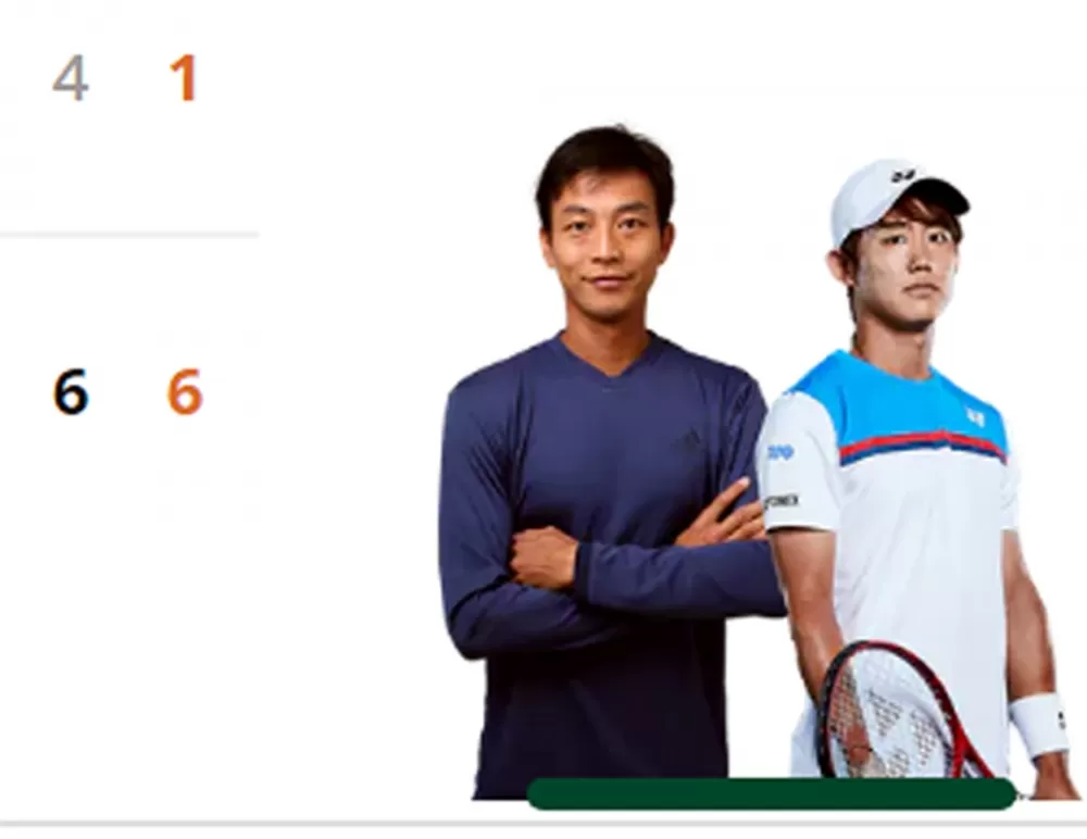 在2014年仁川亞運對決爭金的我國盧彥勳和日本西岡良仁,本屆法國網球公開賽首度搭配雙打,花71分鐘以6:4、6:1收拾臨時遞補上陣的奧地利/荷蘭組合,這是盧彥勳睽違9年再闖法網男雙第二輪。
