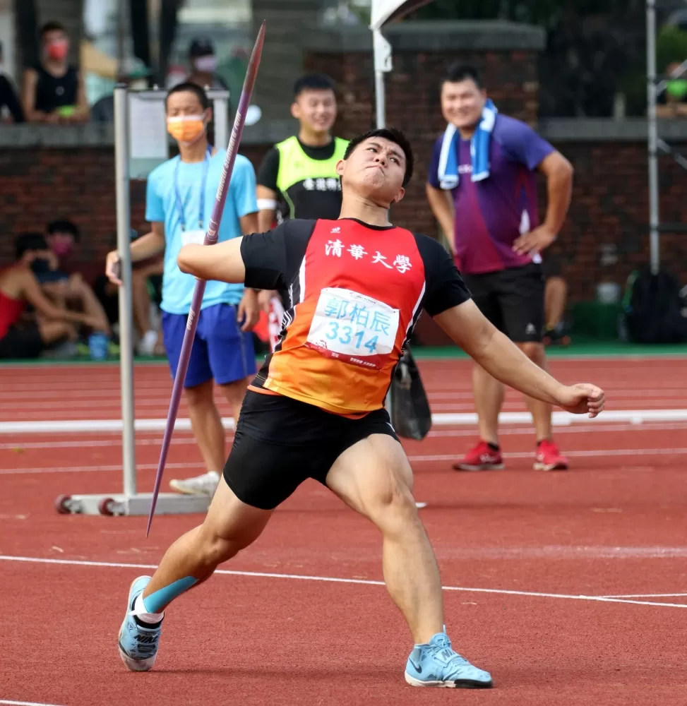名師果然出高徒!大一才接觸標槍的清華大學郭柏辰,今天以64.73打破高懸15年的全大運一般男子標槍大會紀錄,衛冕成功,他的教練就是前男子標槍全國紀錄保持人周宜辰。