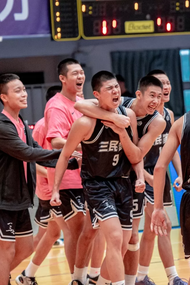 贏球晉級後,三民球員互擁,乃至喜極而泣,全隊又叫又跳high翻,如拿總冠軍,葉仁豪、蔣杰紘、欒承威等幾名高三主力,也是致勝功臣都說,生涯第一度攻進高雄巨蛋,超珍惜的,尤其得來不易,下月20日複賽開鑼,看三民的。