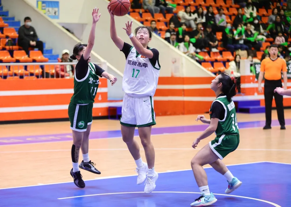 113學年度HBL高中籃賽女甲級八強複賽,10日關鍵一役,上半場一度領先7分的衛冕軍北一女,上半場只小贏1分,三節打完被近兩季第三陽明,兩度超車3分,高二中鋒許語珊再禁區打點「三分打」反以54:49領先進入末節,且3度擁有5分優勢,決勝期盧柏岑連飆4分,61:56看似站穩。