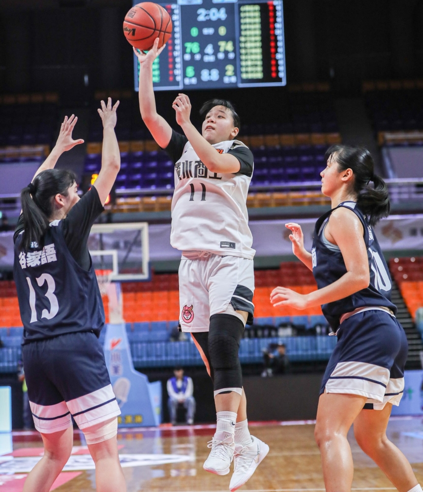 竹商準絕殺淡商。高中體總提供。下同。114學年度高中籃賽HBL女甲級12強預賽,A組20日也小爆冷門,111學年度起已連4季通過資格賽晉級的新竹高商,3先發谷家語、黃聖雅、林渝恩各得26、24、22,隊史頭一遭,合計72分。