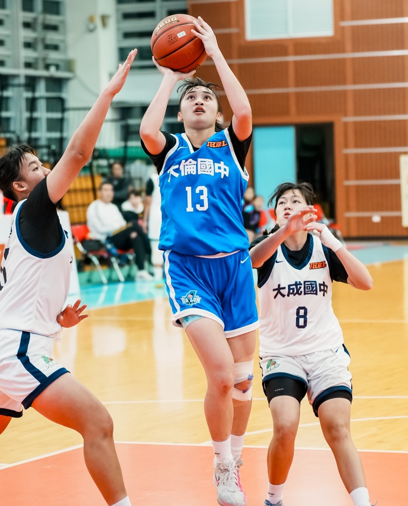 國三「鐵三角」曾珮如11分9籃板、范玉婷10分4籃板,主控陳依依 9分6籃板2助攻5抄截,陳依依說,落後兩位數,但沒有放棄,尤其大 倫黃思諭傷退,我們堅持到底,得以拿下這重要一勝。