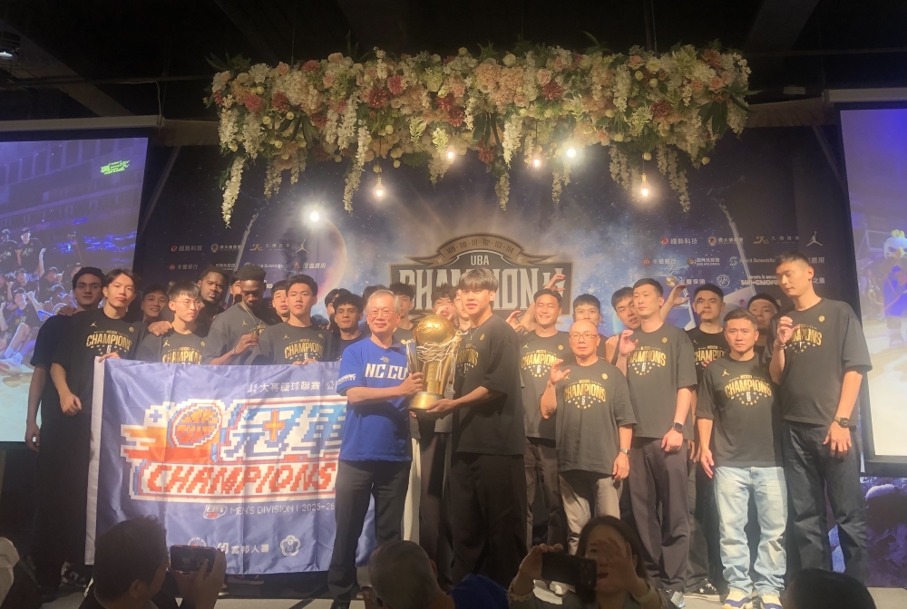 本月19日在台北小巨蛋114學年度UBA大專籃賽公開男一級決賽2連勝,連結預賽15連勝、複賽7連勝,全季2連勝完美封王、跨4季74連勝完成六連霸的政大雄鷹,23日晚上在台北晶宴會館舉行感恩歡樂慶功宴,全部隊職員、師長家長、親朋好友,共聚一堂,且不分你我彼此,大家載歌載舞,度過一個難得輕鬆、壓力全拋的籃球夜晚,更提前預約115學年度下季七連霸(7UP)。